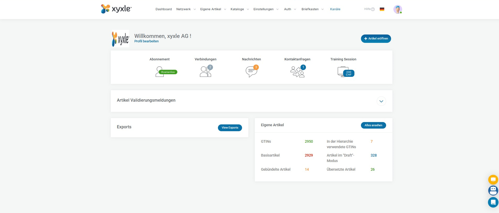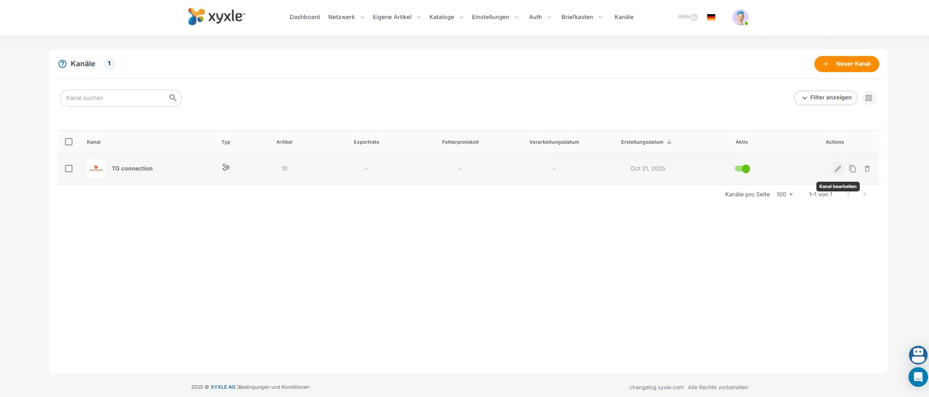 After you have added your new article/articles and already published this in your account, then click on "Kanäle".